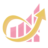 Pink bar chart with yellow upward arrow indication of growth or increase.
